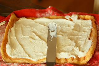 *Note: The original recipe called for 1/2 cup of strawberry jam spread over the cake before spreading on the whipped cream. I didn't have strawberry jam so I left it out but the jam would add a bit more strawberry flavor to the cake so I think I'll add it next time I make this.
